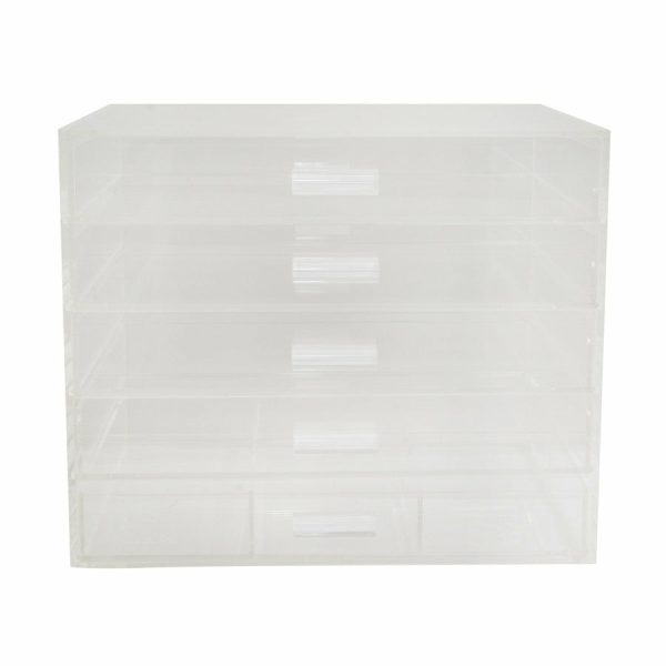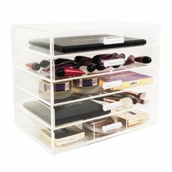Organize your makeup with Impressions Vanity’s Acrylic Makeup Organizer. Featuring 5 drawers and an open top for easy access and elegant display.